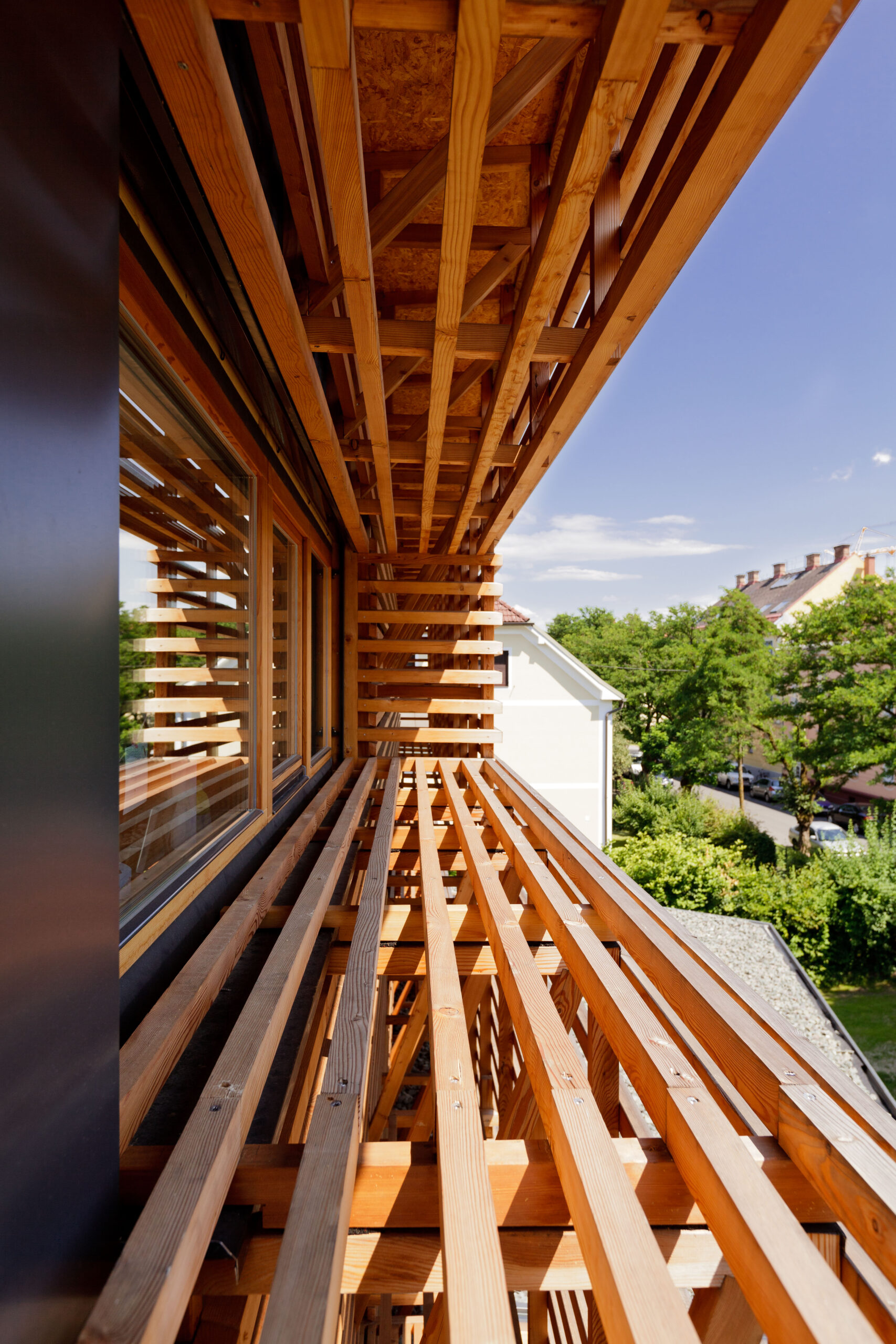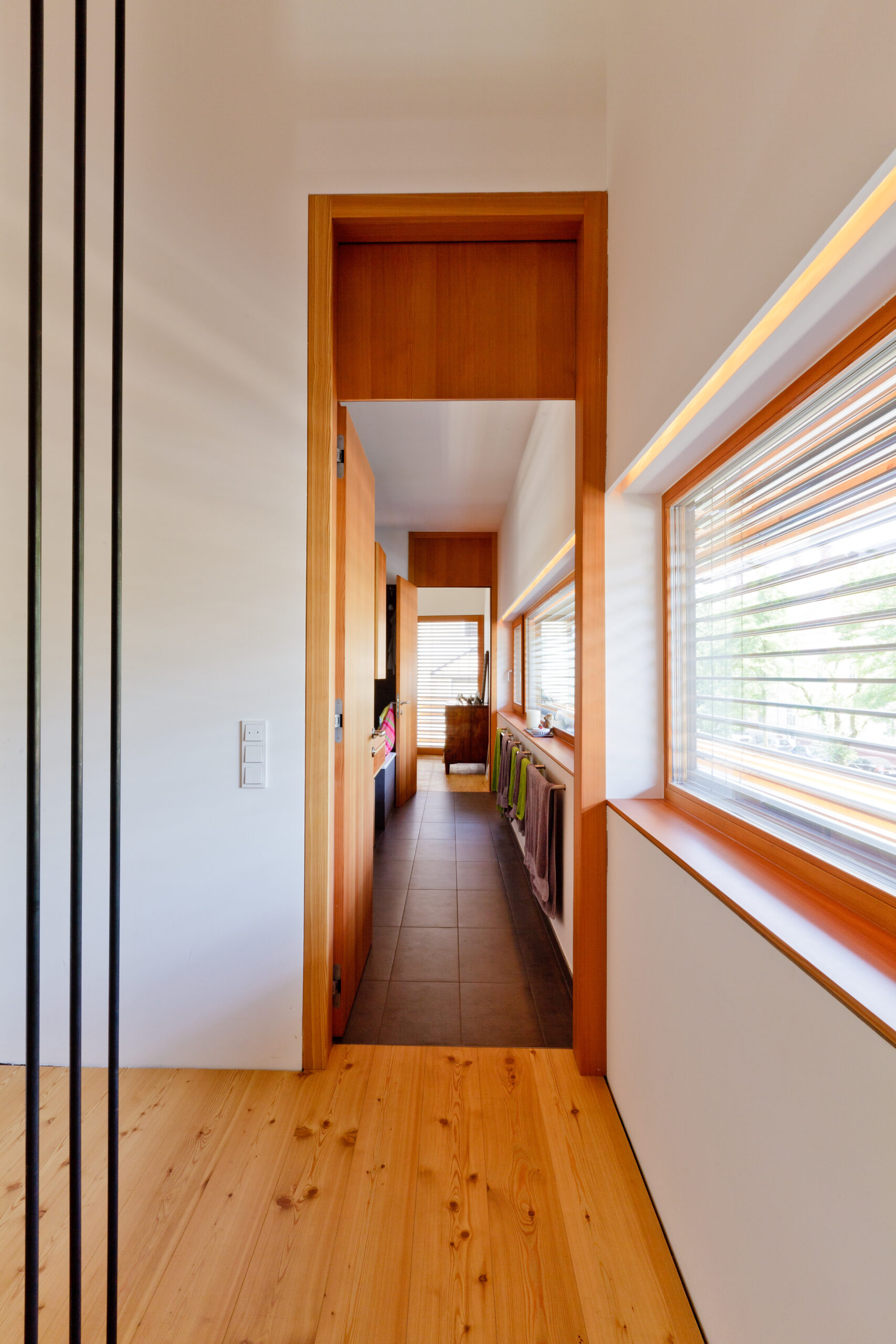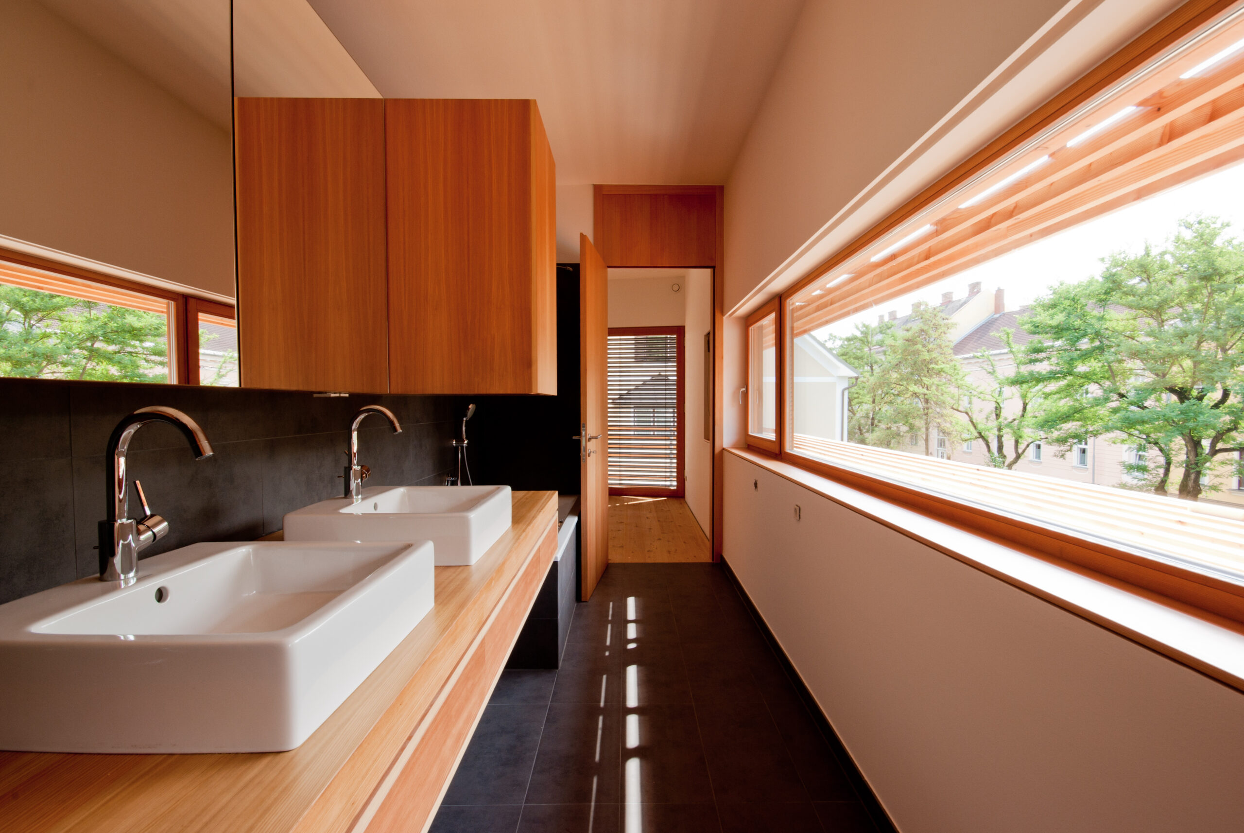 Vor dem Hintergrund einer städtischen Lage, unweit des Stadtzentrums aber in grüner Um- gebung, die Komplexität der Erwartungshal- tung übertreffen und somit die Ausformulierung zu einer Besonderheit stilisieren. Wenn man von Lage spricht, meint man die Platzierung, wenn die Ausrichtung zum Thema wird, bemüht man sich der Ausnützung von Sonnenständen, worüber spricht man aller- dings beim Erscheinungsbild eines Hauses? Wie sieht die „gewünschte“ dritte Haut aus? Im Geforderten finden sich die Befindlichkeiten der Bewohner, in den Ansprüchen die Urteils- kräfte und in der Bewertung die Umgangs- formen! Das Haus kann also dann alles Gut, wenn man das Falsche einfach weglässt, frei nach Leo- nardo d. V. übersetzt und könnte somit nicht besser sein, wenn man nur das Gute ausführt. Im Idealfall ist es aber nicht der emotionale Seufzer der Bauherrin über das verloren ge- glaubte „Landhaus der Toskana“, sondern die Erarbeitung der maßgeschneiderten Struktur für den vorgegebenen Raum. Die Raumde- finition liegt nunmehr in der Ergänzung der Funktion durch die Vorstellung über den Raum! Eine gegenseitige Befruchtung entbindet die Möglichkeiten der Formulierung zur endgül- tigen Form! Das Gebäude stellt sich selbstbewusst und gleichzeitig die städtebauliche Situation achtend, an die nördliche Grundstücksgren- ze, verlegt die Zufahrt an die Westseite und minimiert somit den Störungseinfluss auf der südlichen Gartenfläche! Der vorgefundenen Geländeformation folgend, entwickelt sich das Haus über die verschiedenen Niveaus vom Garten weg nach oben. Dabei spielt vor allem für den erdgeschossigen Teil die Zuordnung zum Außenraum und die mögliche barriere- freie Bewohnbarkeit eine wesentliche Rolle!